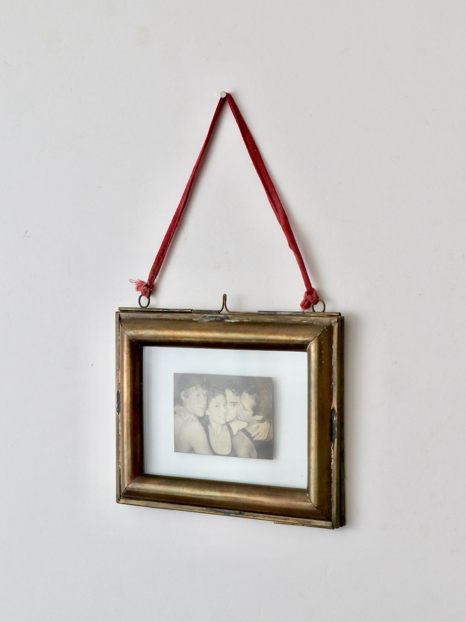 蝶番でつながれた2枚のガラス板に写真を挟む、シンプルかつ洗練されたデザイン。