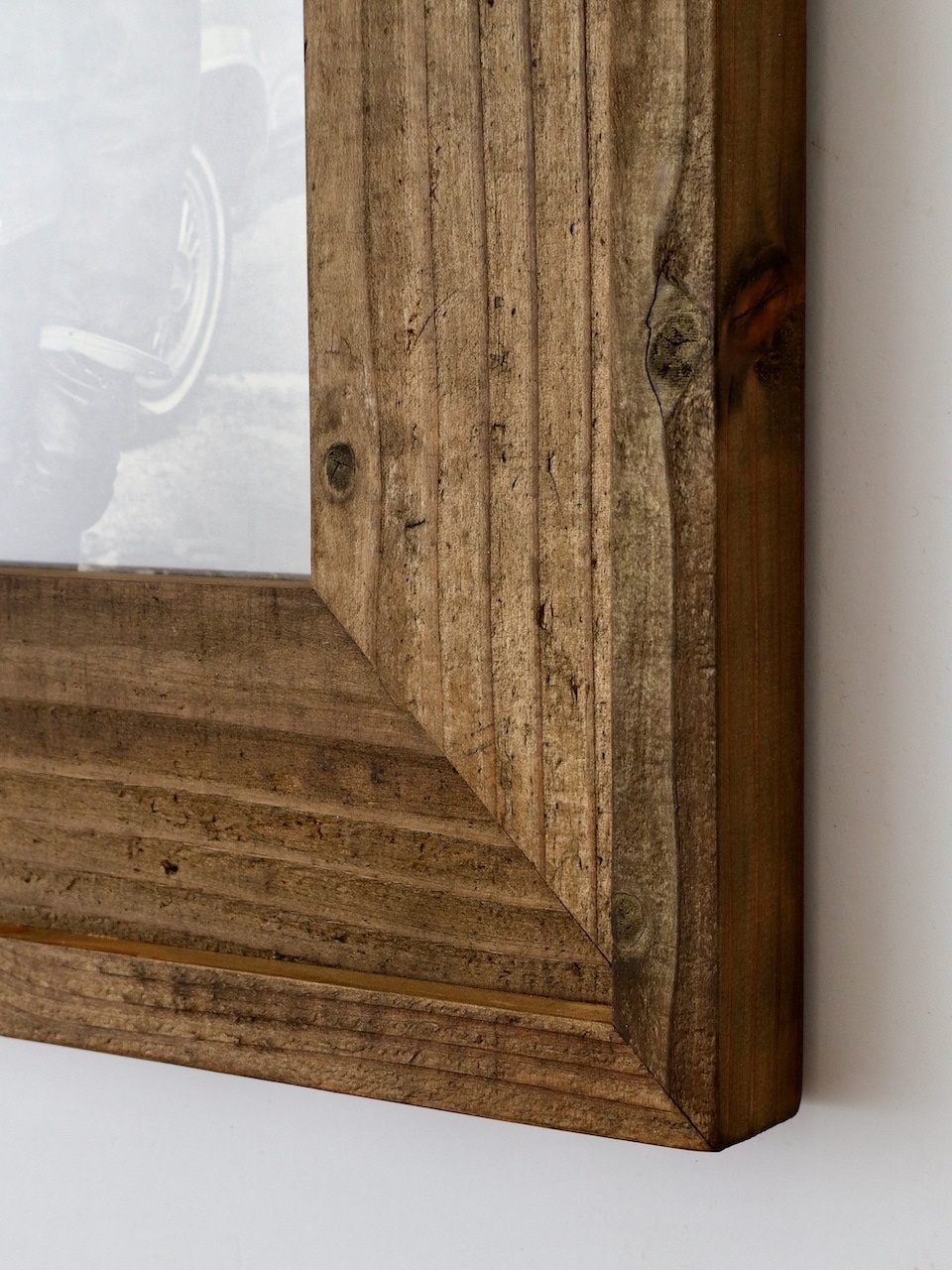 日本の工事現場で使用されていた杉の足場板を再利用したフォトフレームです。