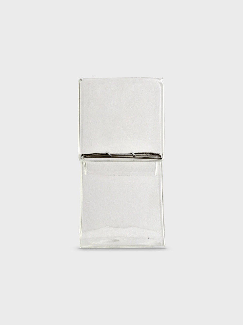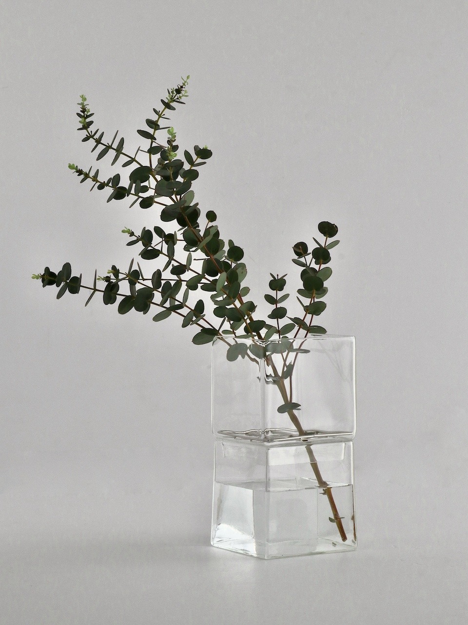 立方体が積み重なったようなデザインのクリアガラスの花器。