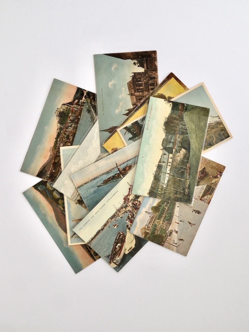 1950〜60年代のヨーロッパで発行された、古いポストカードです。ドイツ、イギリス、フランスを中心に集められたもので、風景画や観光名所のモノクロ写真、クリスマスモチーフのカードなど、時代を感じる魅力的な絵柄が揃っています。