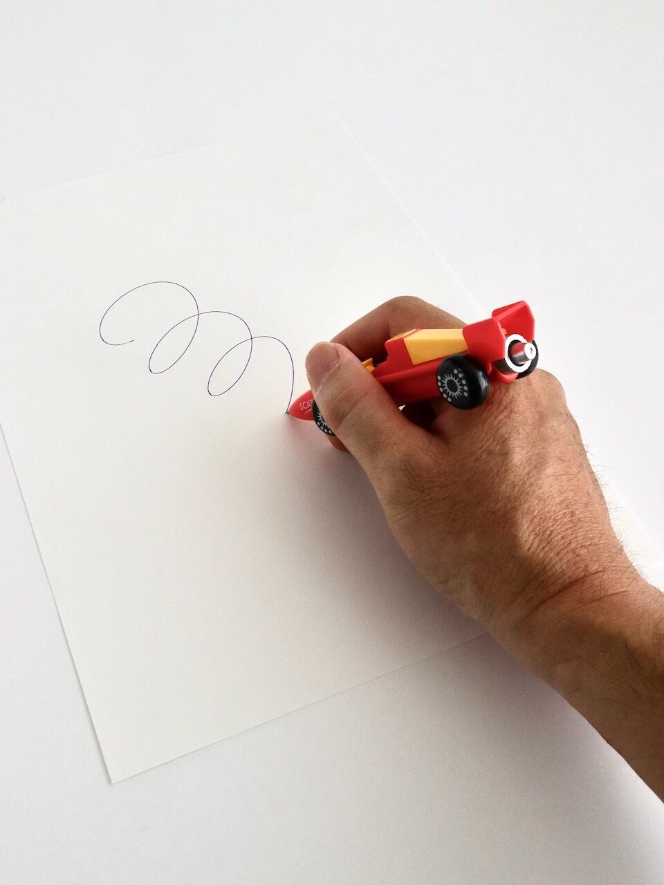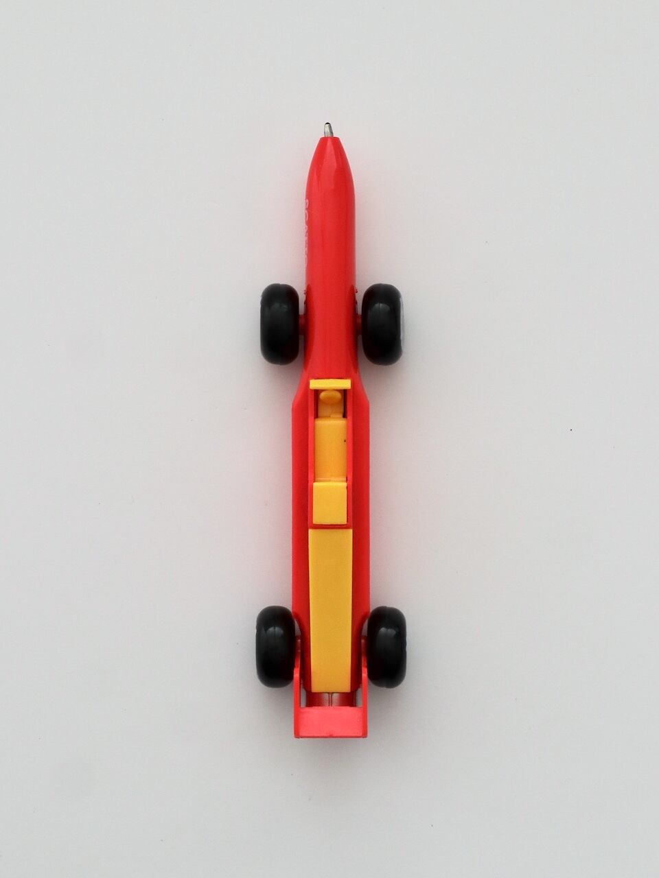 レーシングカーを模したユニークなデザインのノック式ボールペン。