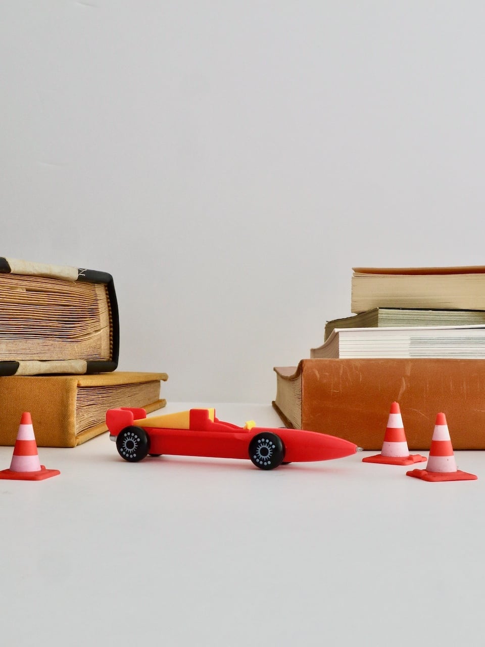 赤いボディに黄色のシートが映える、イタリアらしい明るくて可愛いカラーリングです。ロケットのようなスピード感を感じさせるフォルムは、デスクに遊び心をプラスしてくれます。転がして遊ぶこともできるので、ちょっとしたリフレッシュタイムにもぴったり。
