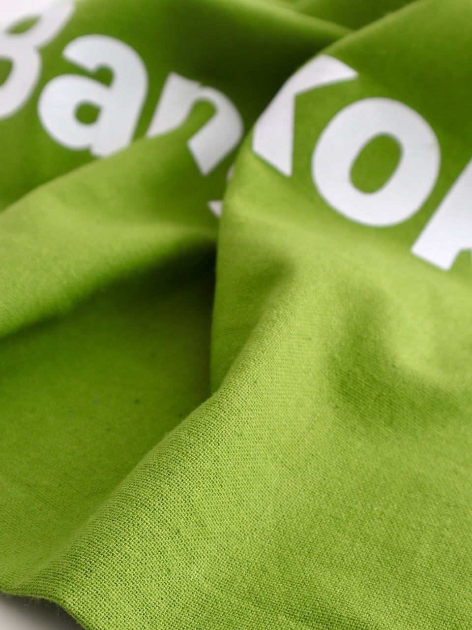 無地の生地に「Bangkok」のロゴがプリントされています。