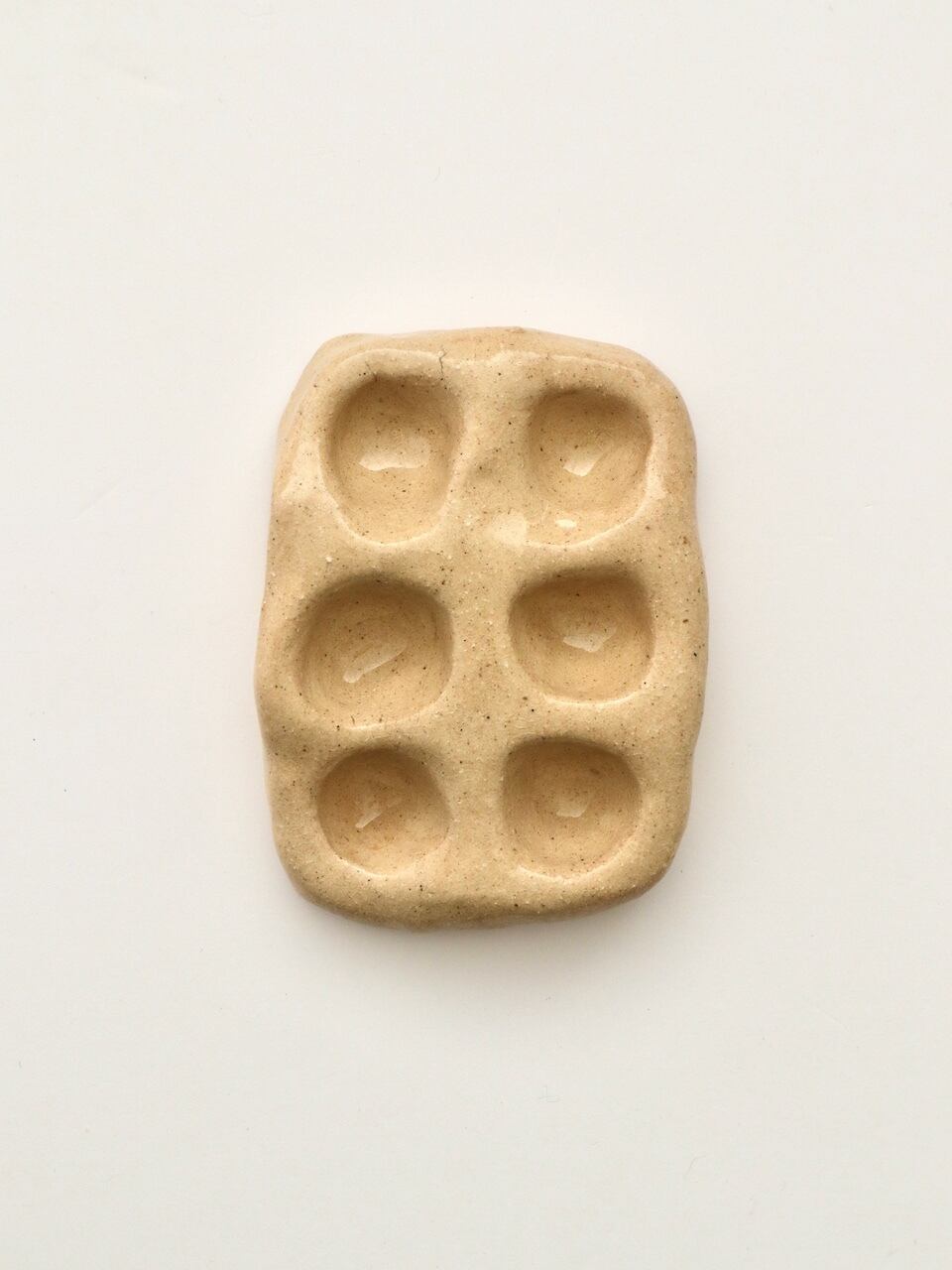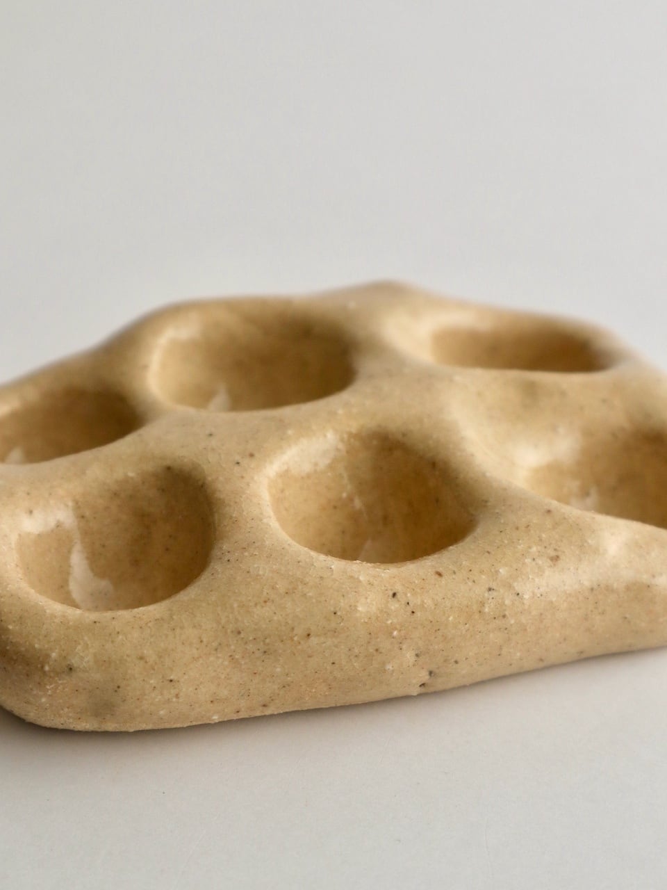 手作業で成形され、不規則な窪みを持つ有機的な形状が特徴です。