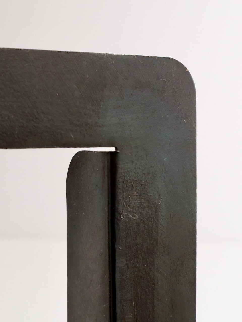 鉄板を折り曲げて成形した構造で、直線的なフォルム。ミニマルな彫刻作品のような雰囲気です。