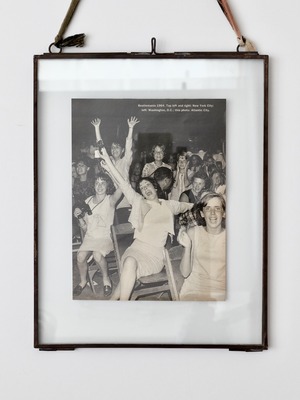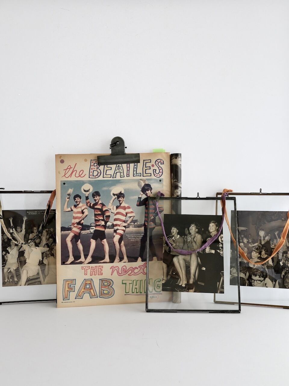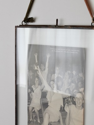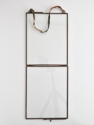 蝶番で繋がれた2枚のガラス板で写真を挟んで飾ります。