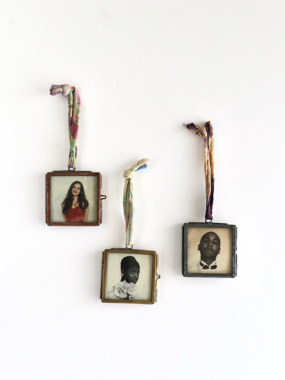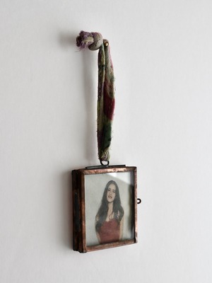吊り下げる紐は、ユーズドのサリー(インドの女性の衣服)で作られています。そのため、色柄や長さが1点ずつ異なります。