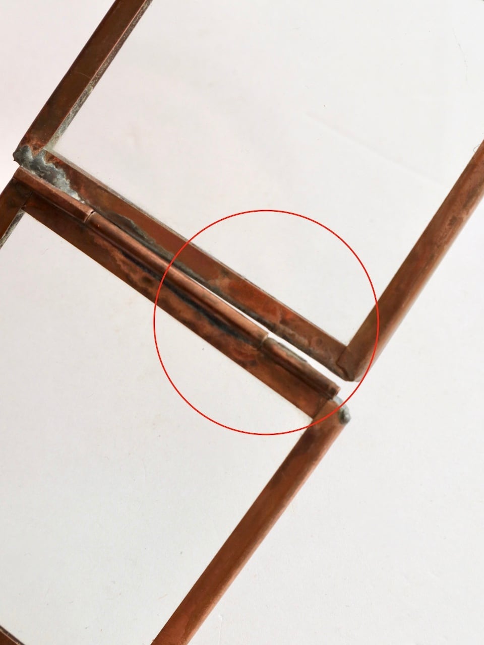 *蝶番部分の溶接が一部剥がれているため。
