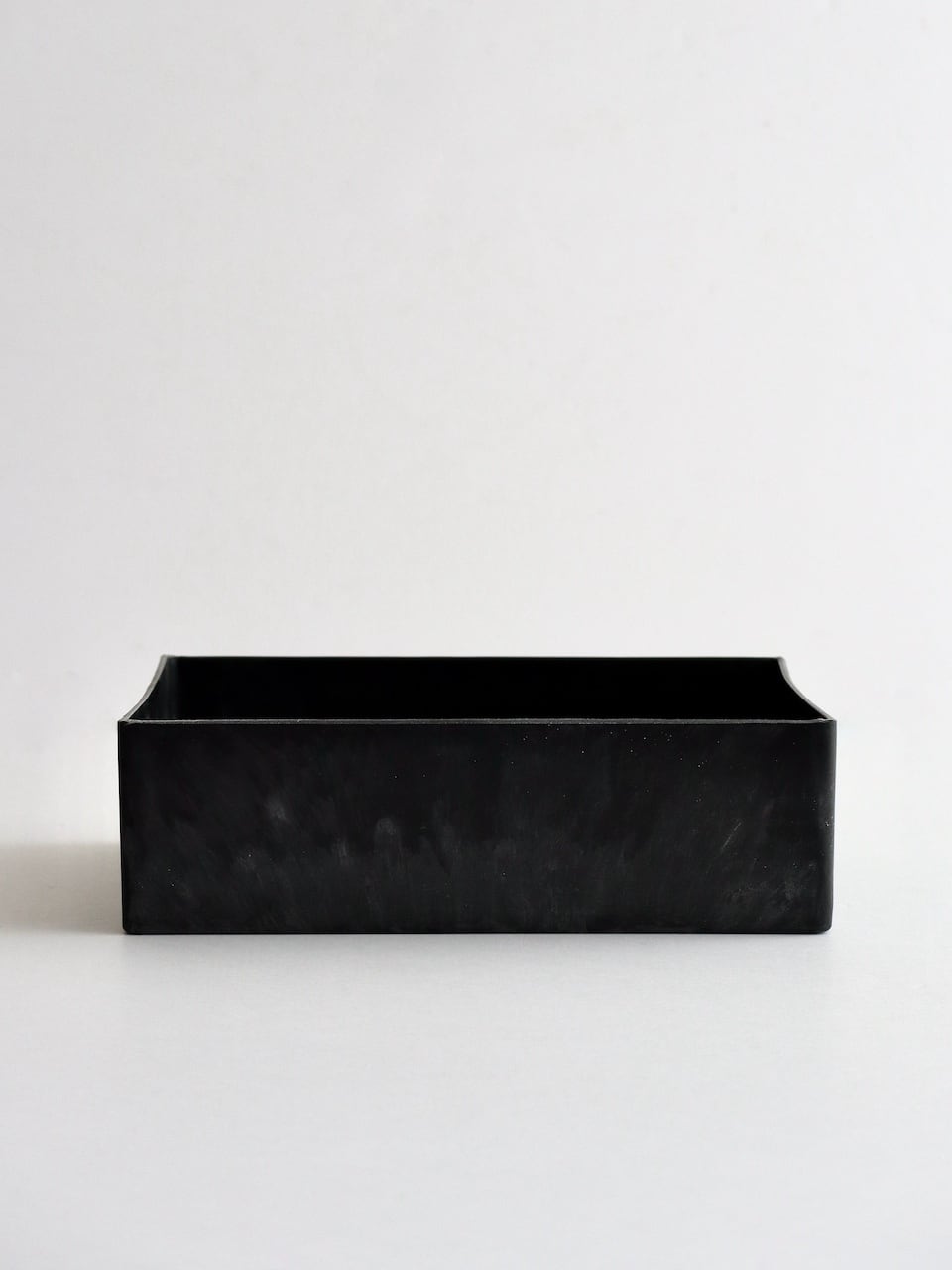 表面には白っぽく流れたようなムラがあり、均一でつるりとした一般的なプラスチックとは異なる表情です。