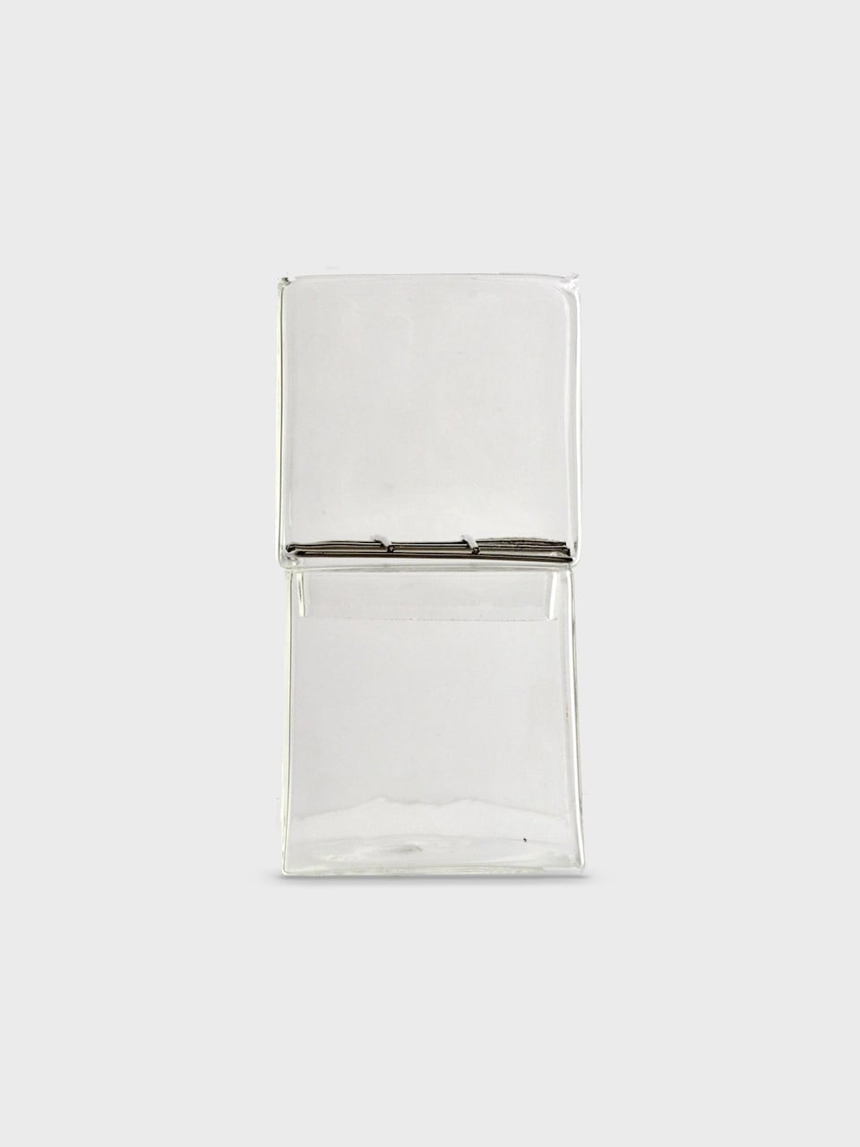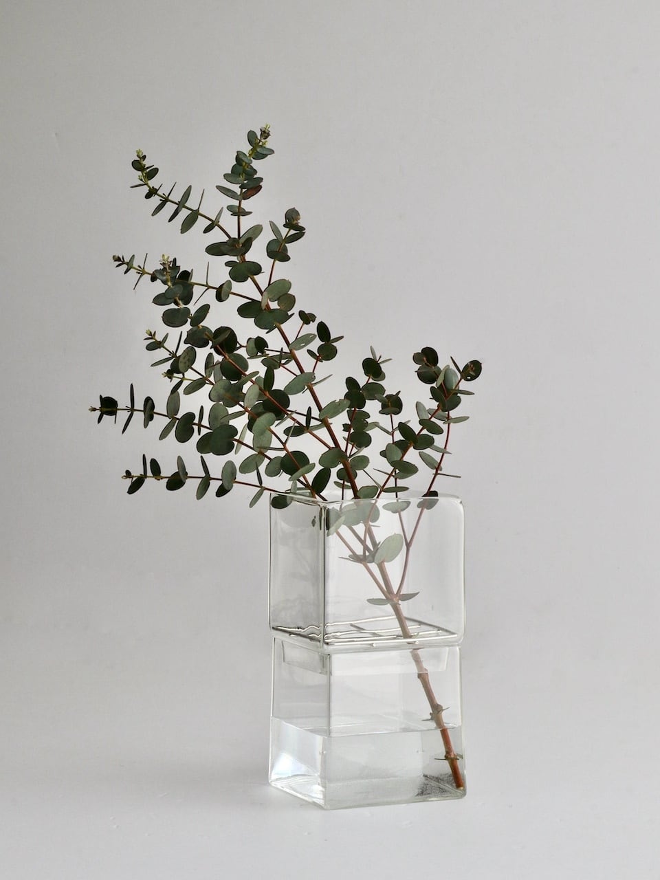立方体が積み重なったようなデザインのクリアガラスの花器。