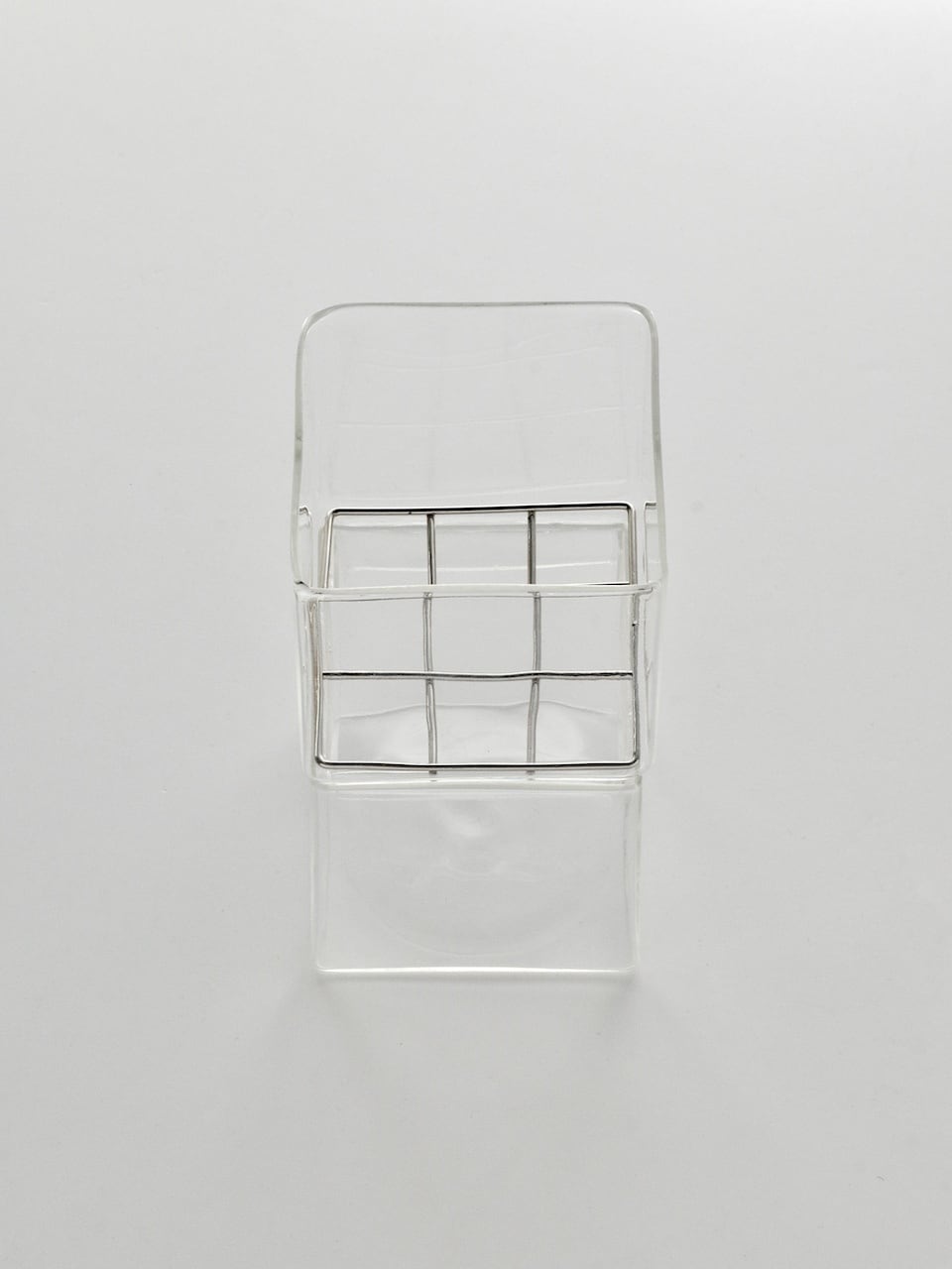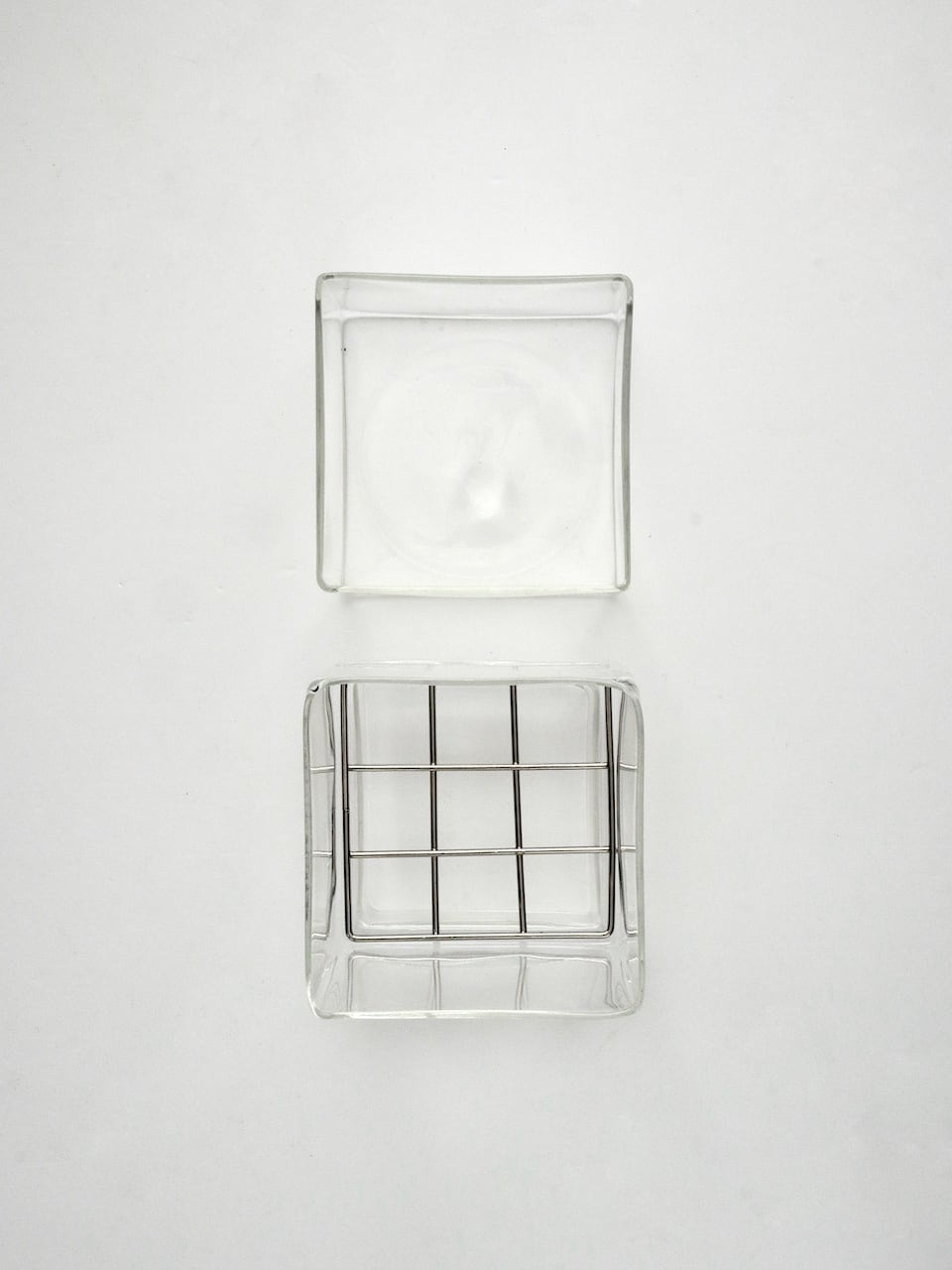 2つのパーツに分かれており、上部のガラスキューブの底面には金属製の格子をはめ込むことができるので、水耕栽培にも使用できます。
