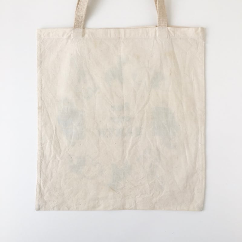 企業やブランドは不明ですが、静かなメッセージのある優しい雰囲気バッグです。