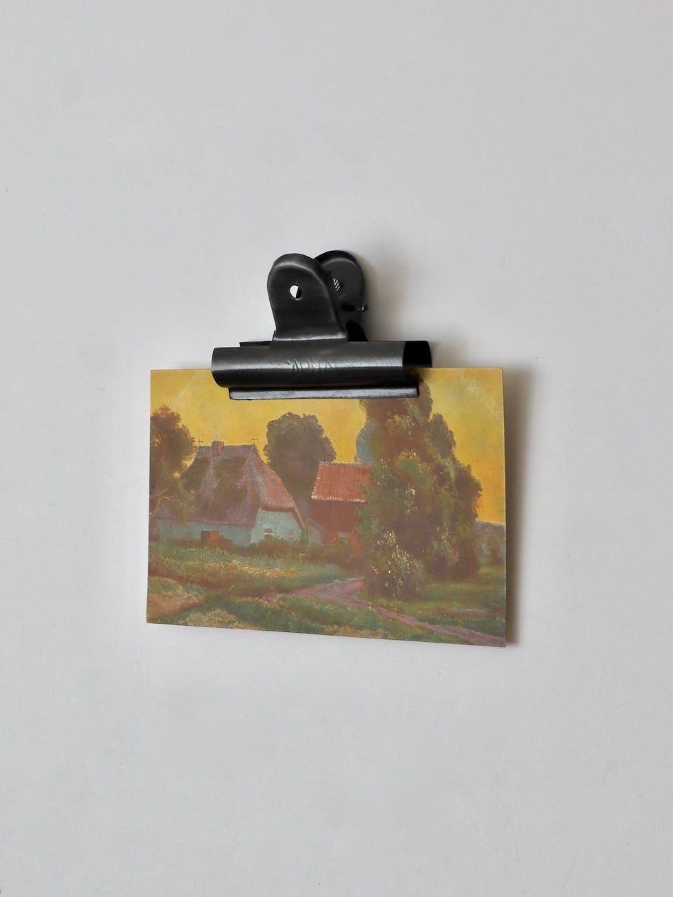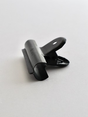 黒い鉄の質感がインダストリアルな雰囲気を演出します。書類や写真の整理はもちろん、食品袋の口を留めたり、ちょっとした収納にも便利。つまみ部分の穴を使えば、ピンに掛けて吊るすこともできます。シンプルながら無骨で存在感のあるステーショナリーです。