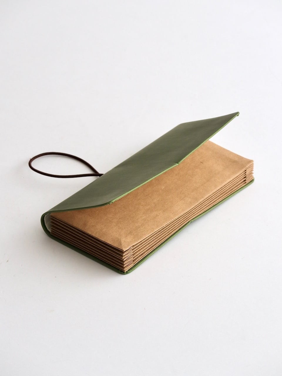 革のような風合いのイタリア製PUレザーを使用した、蛇腹式のレシートホルダーです。