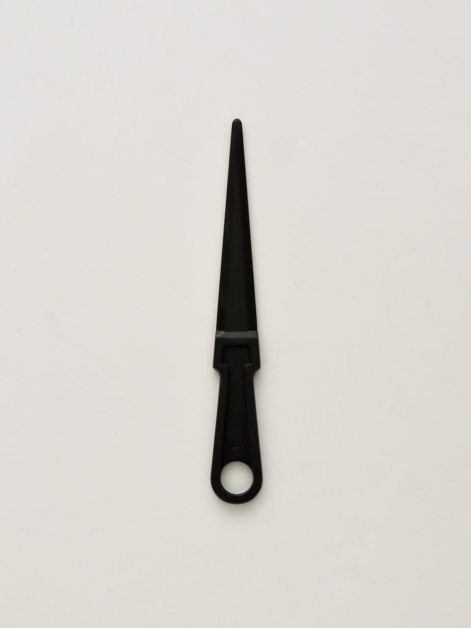 ナイフ型の形状ですが、鋭利な切れ刃はなく、封を切るために必要な薄さと角度に設計されています。