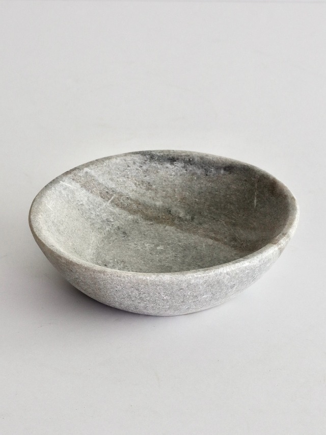濃いグレイの色合い、シンプルな形で手のひらで包めるほどの大きさです。