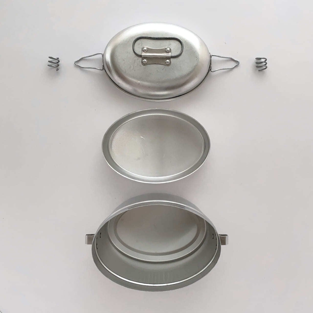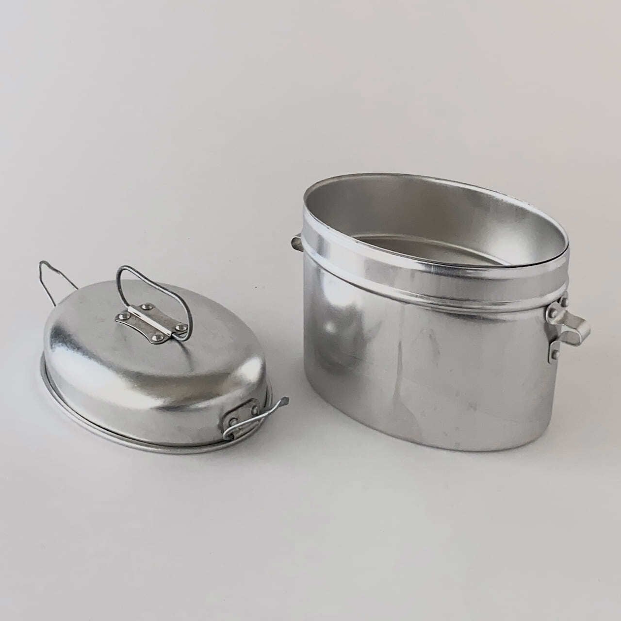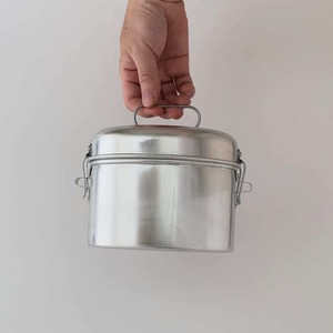 ポルトガルのMardouro(マルドウロ)社の飯盒。1969年以来、ポルトガルの工場でアルミニウム製の食器を作り続けています。飯盒は普段使わない道具ですが、どういうわけか欲しくなります。潜水艦のような、飛行船のような面白い形。鈍いシルバーのボディ。個人的にはキャンプやアウトドアはあまりしませんが、不思議な道具感が心をくすぐります。飯盒として使用しない場合は、キッチンの食品保存容器やお弁当箱として使用できます。実際、Mardouroを扱うポルトガルのインテリアショップでは、「食品の輸送に適した楕円形のお弁当箱」と紹介されています。