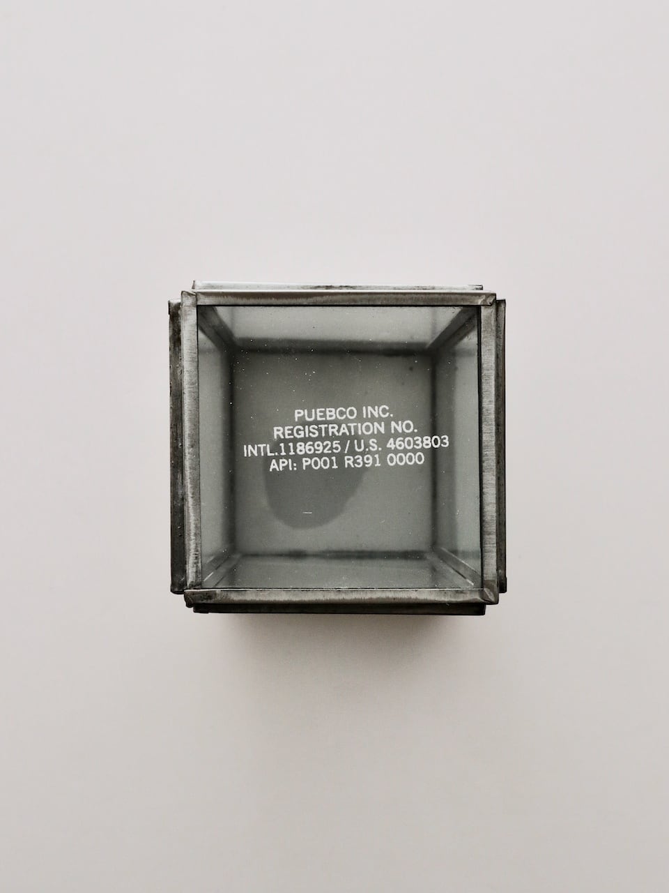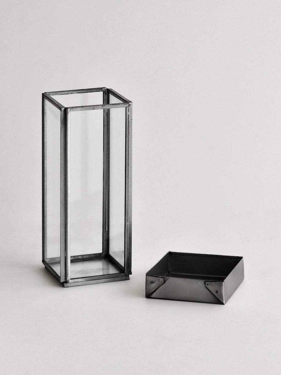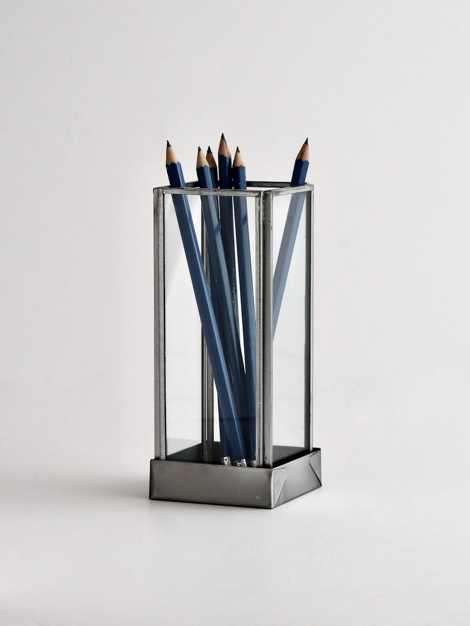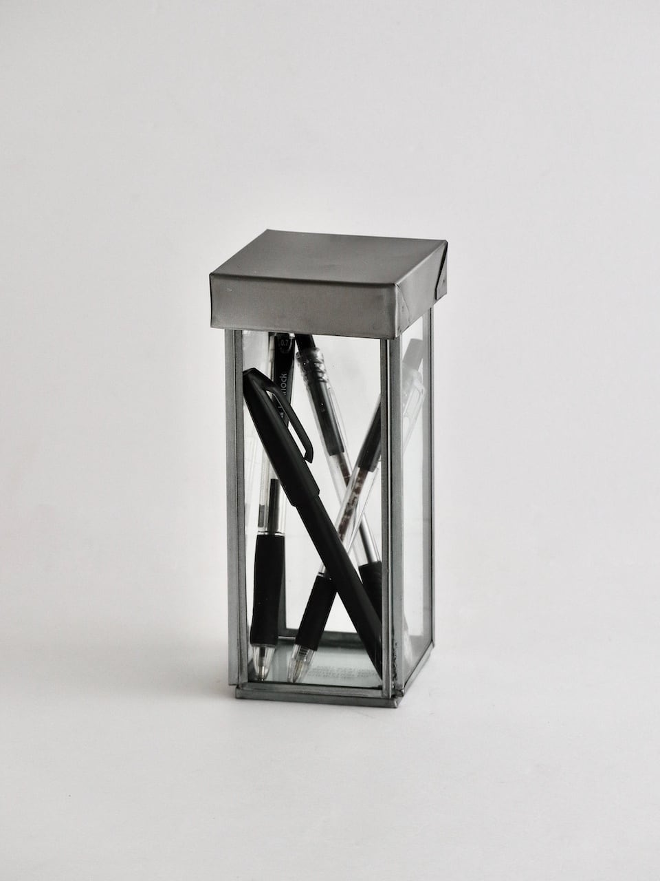 ガラスボックス リサイクルスチール ペンスタンド|Glass Box with Recycled Steel Lid – PUEBCO