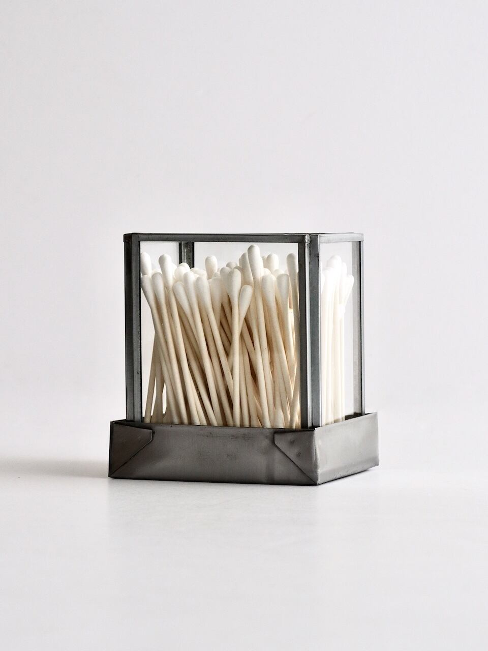 ガラスボックス リサイクルスチール コットンスワブ|Glass Box with Recycled Steel Lid – PUEBCO