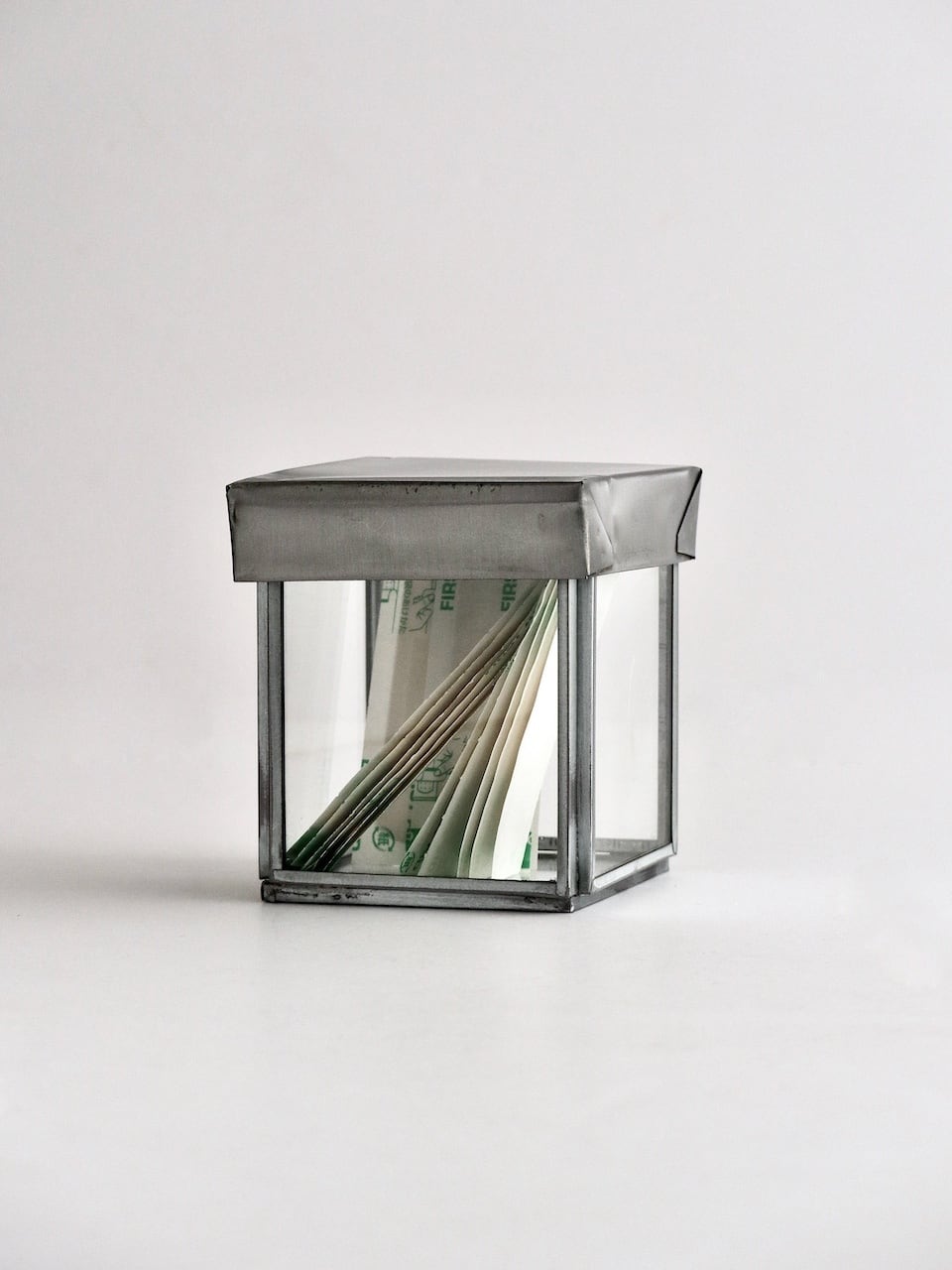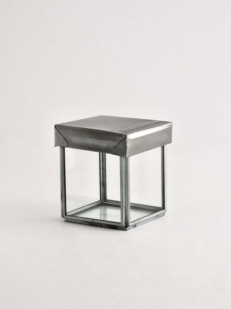 直線的なガラスボックスに、リサイクルスチールの蓋を組み合わせた構成。