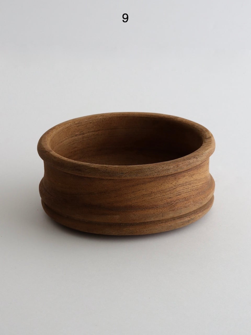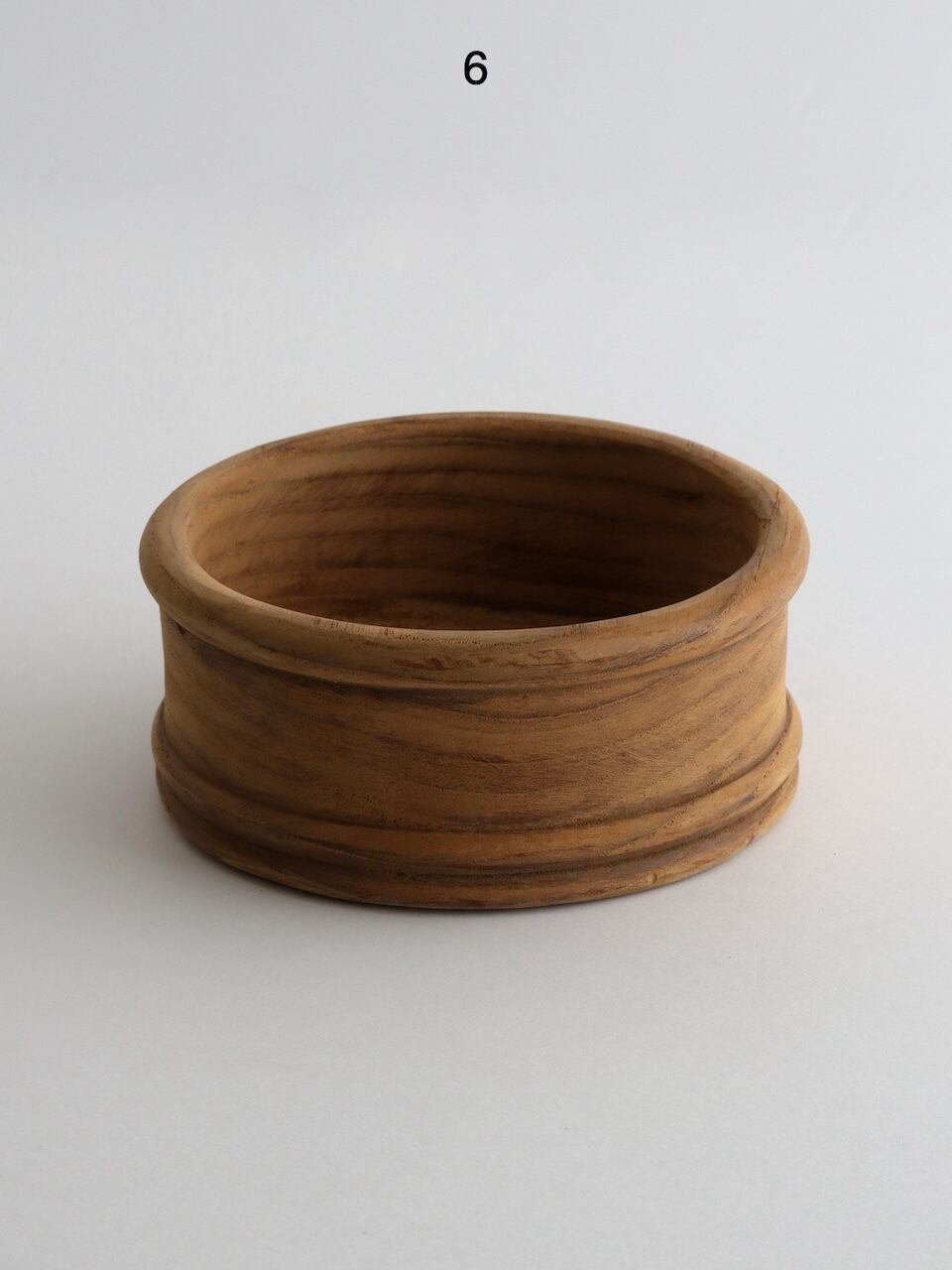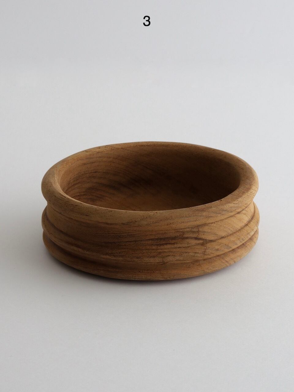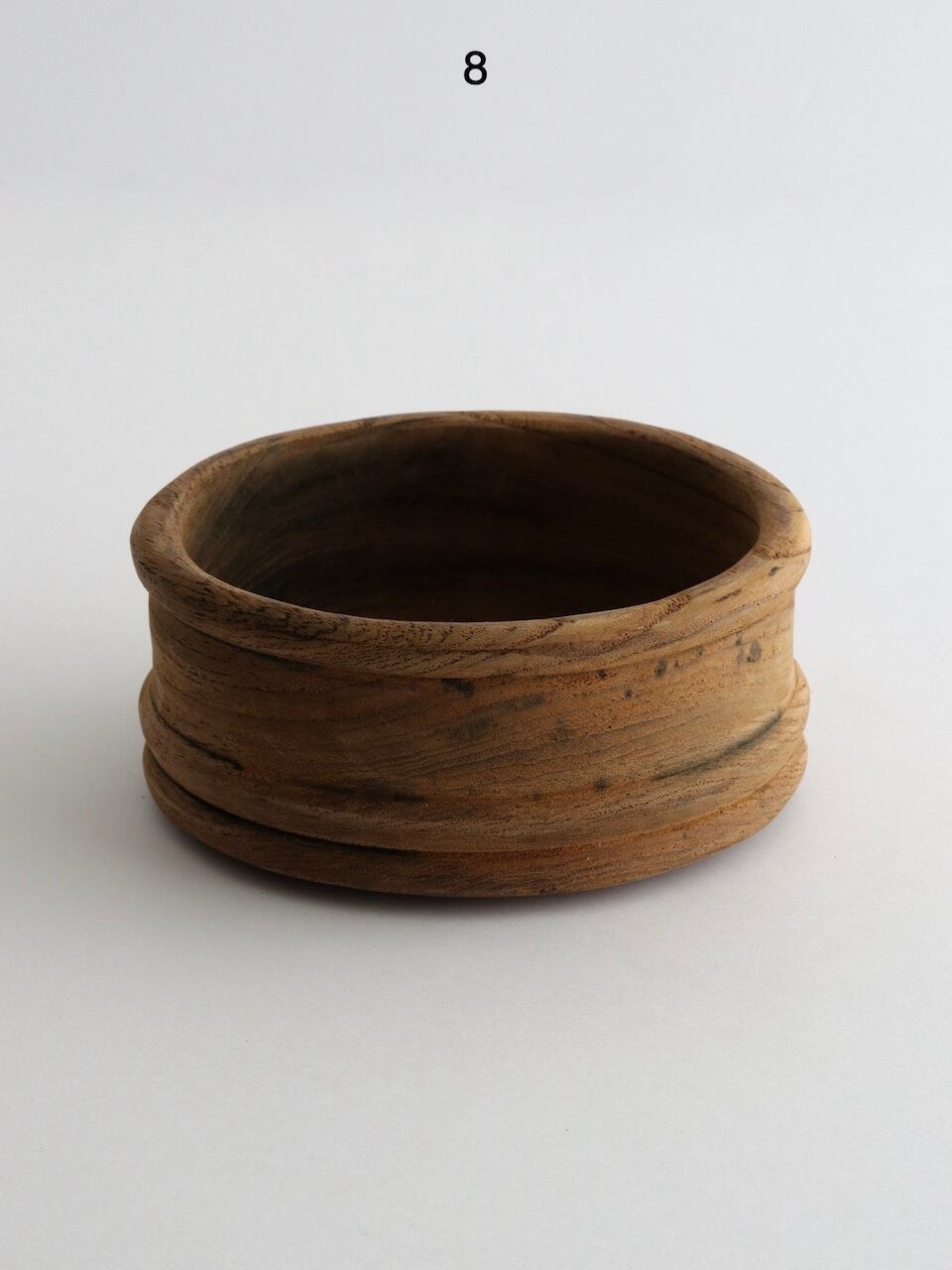タイで見つけたこのボウルは、ナチュラルな色合いと古材ならではの素朴な表情が魅力です。無垢の木から削り出され、使い込まれたような自然な経年変化がインテリアに落ち着きをもたらします。