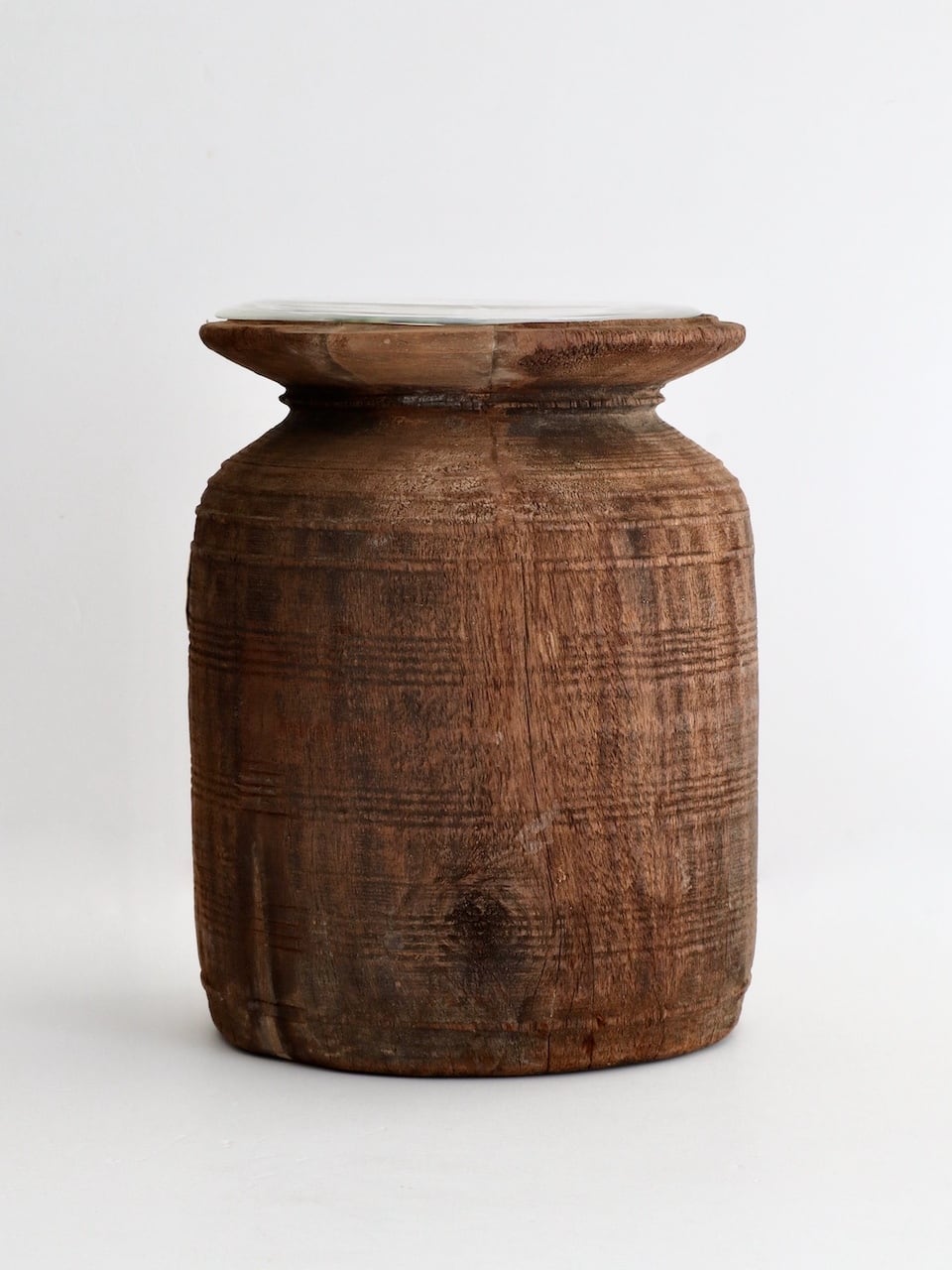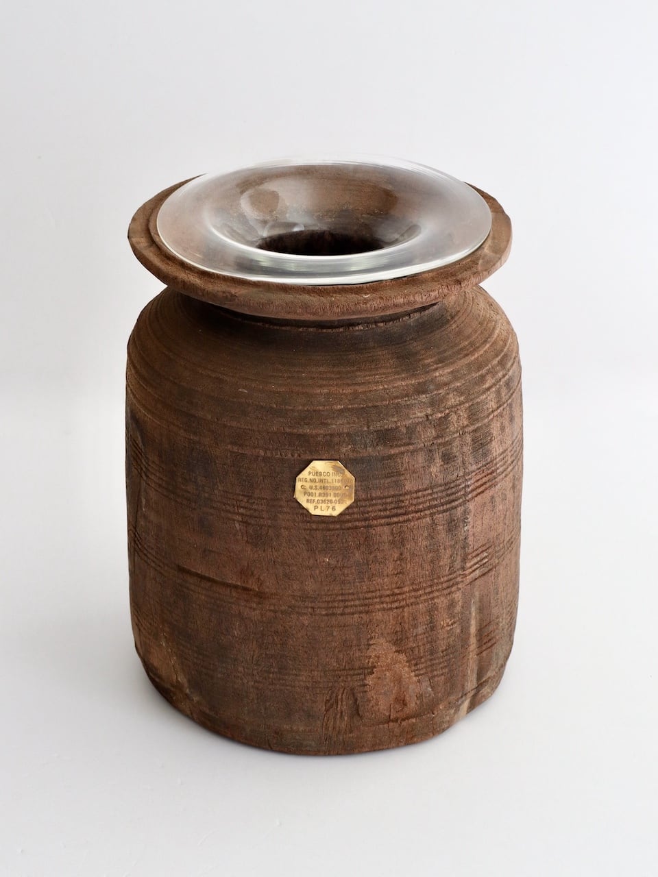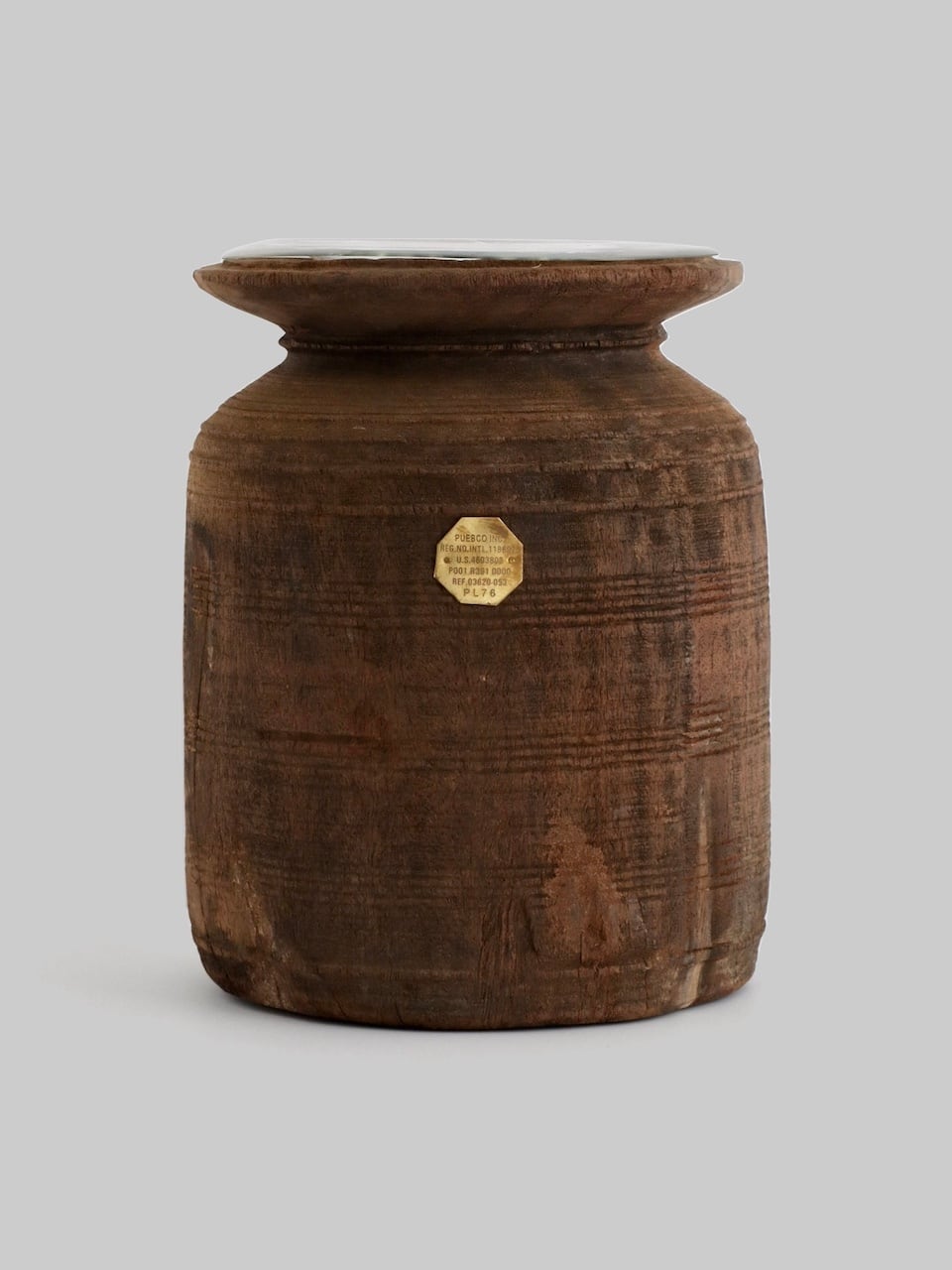 ヴィンテージ ウッドポット 花瓶|Vintage Wooden Pot Vase with Glass Cylinder – PUEBCO