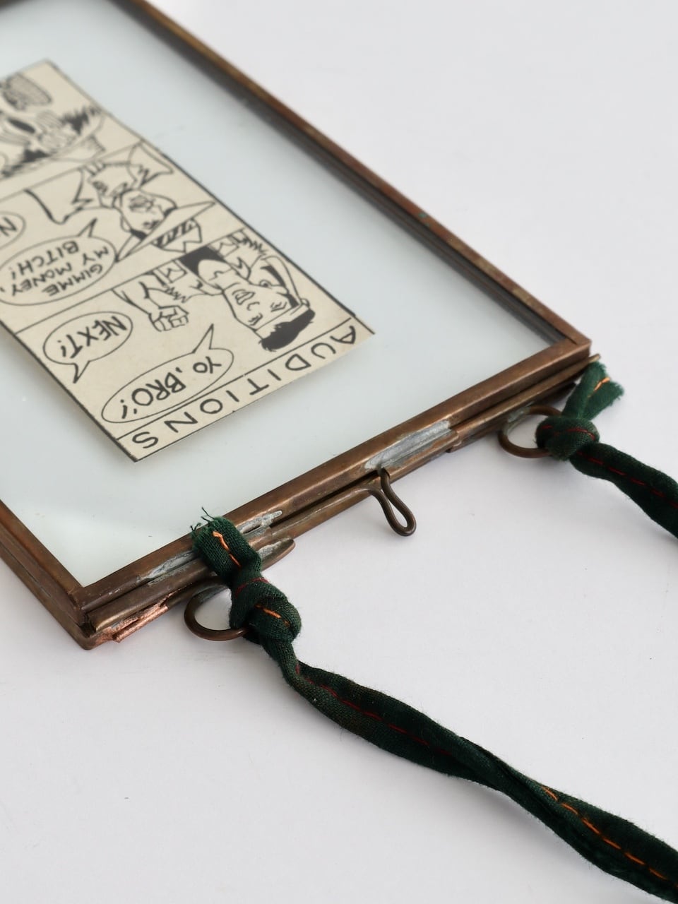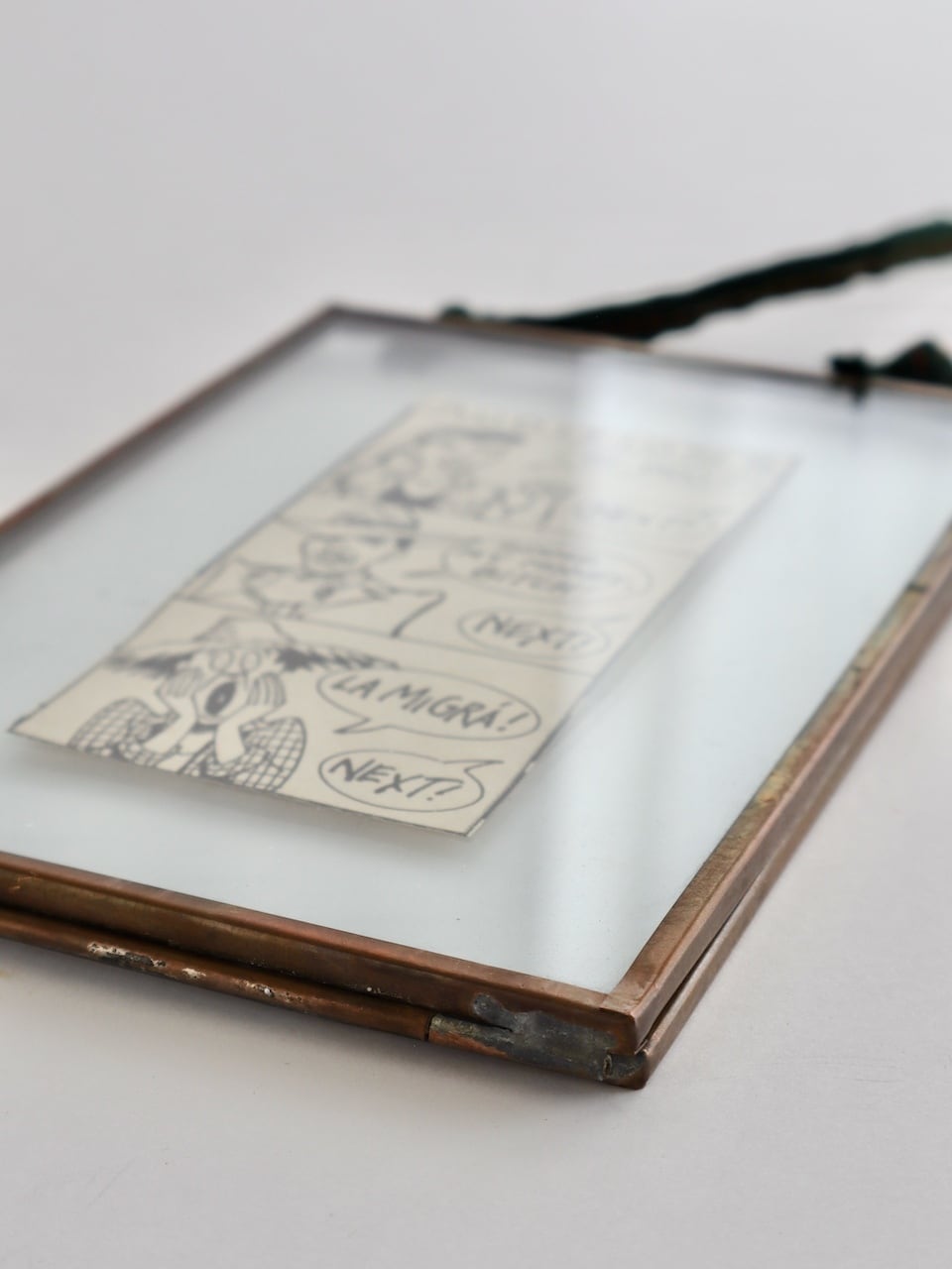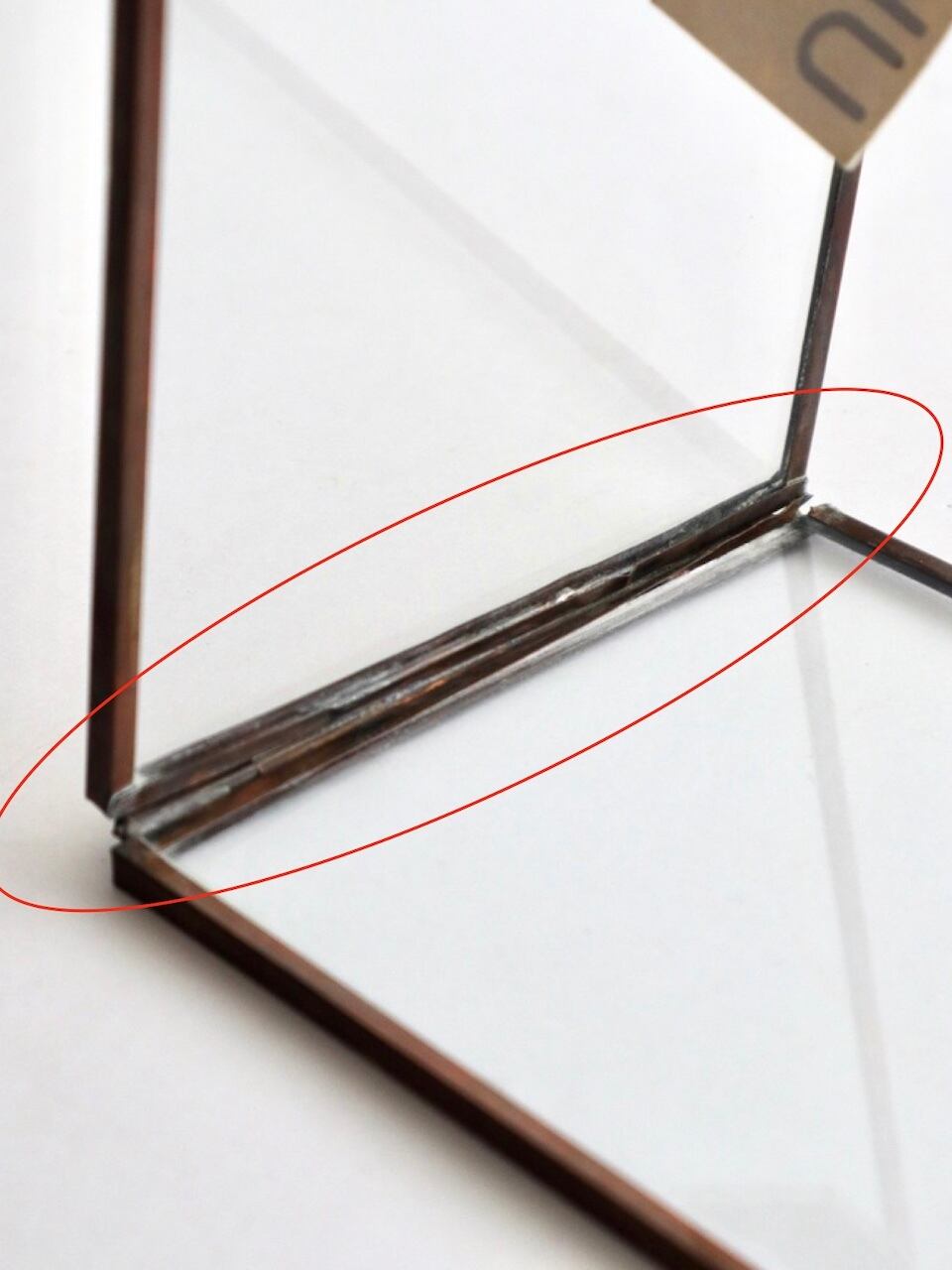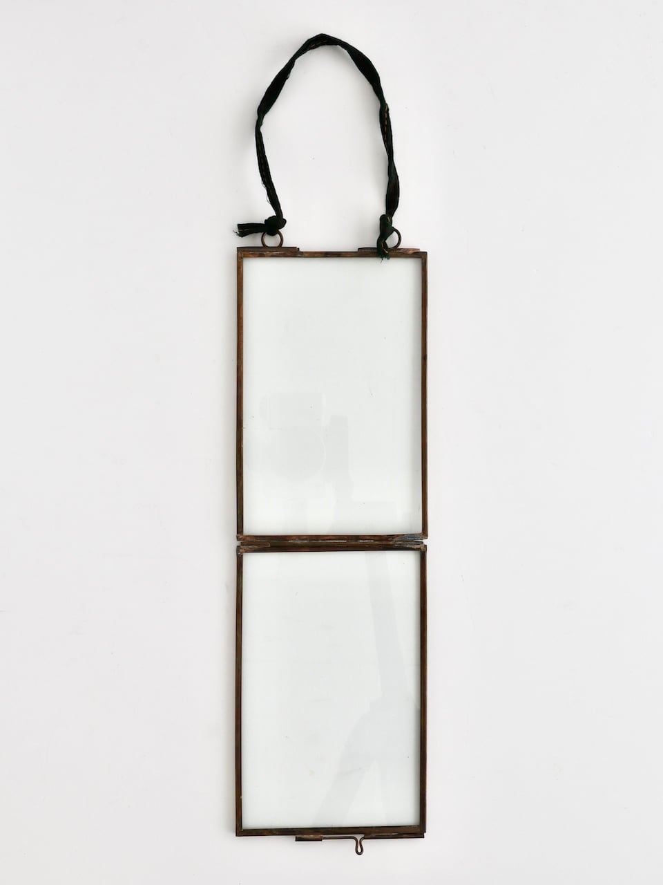 蝶番で繋がれた2枚のガラス板で写真を挟んで飾ります。