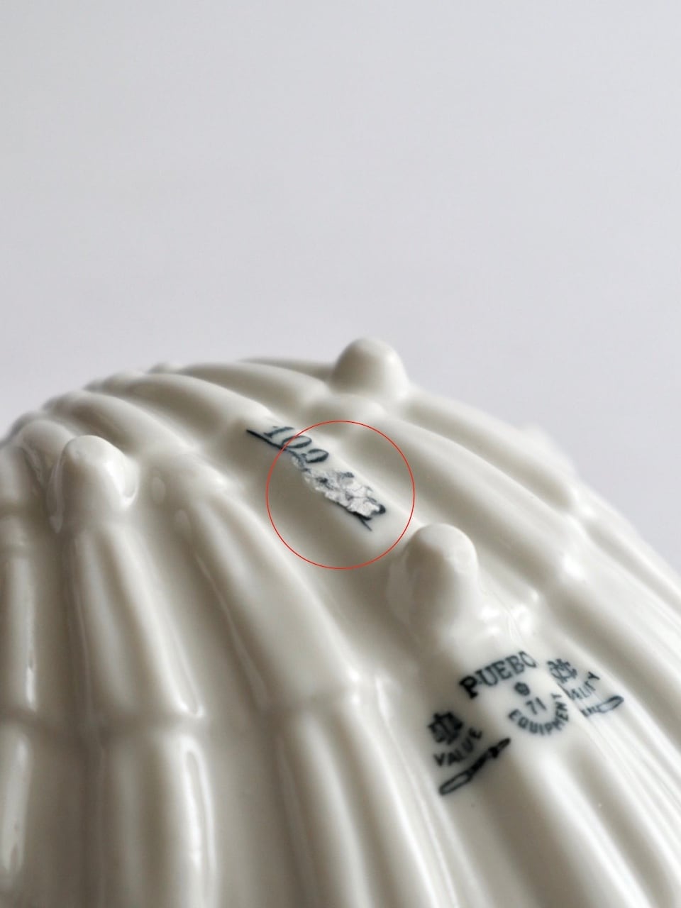 *ロゴ部分に、焼成時に生じたキズが見られるため。